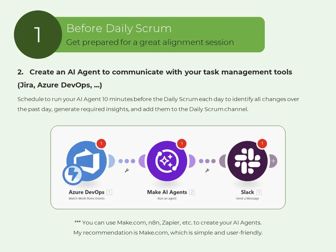 برای آمادهسازی تیم برای اسکرام روزانه تقویتشده با هوش مصنوعی، باید سه چیز را تنظیم کنید: